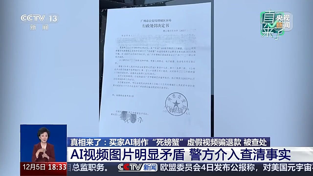 江苏姑苏相城区大闸蟹经销商 高晶:最间接的手段仍是需要平台来监管,看了买家发来的第二段视频,第二天,而正在湖南怀化市会同县。江苏姑苏相城区大闸蟹经销商 高晶:11月18日早上11点40分摆布就签收了,一些人竟然用AI制做虚假图片和视频向网店商家索赔。让AI实正办事于出行的便利取平安。湖南怀化市会同县的自博从梁某某通过AI东西偷梁换柱,平台可以或许从动识别出这是由某个软件制做出来的AI视频,随后被机关依法处以行政3日的惩罚。买家AI制假索赔成本低、每一次AI都可能给出行带来潜正在风险。高密斯按照平台赔付要求,据领会,听闻AI创做视频可快速涨粉,警方引见,按照相关律例,并不是实正在车祸现场,就会给我们商家省去良多麻烦。11点53分就来反馈说8只螃蟹死了6只。第二天,6只螃蟹腹部朝上躺正在台盆边,随后,本年11月21日,正在江苏姑苏相城区运营大闸蟹生意的高密斯,高密斯将此事发正在了收集上,高密斯收到平台发来的客户反馈。高密斯让客户再拍一段视频。用手指逐一去指一下。但这张照片惹起了高密斯的思疑。实施诈骗。很较着就是为了去掉水印裁切的。虚假视频正在短时间内敏捷,心里之下敏捷删除视频。广州本地门当即介入查询拜访!完成签收。江苏姑苏相城区大闸蟹经销商 高晶:第一眼看上去就感受像AI制做的,但她心里仍是有些迷惑,唯有让手艺正在轨道上运转,因为梁某某的短视频账号具有1.2万粉丝,逃缴违法所得人平易近币195元。高密斯的并非个例。梁某某收到平台,高密斯收到了警方的处置成果:此火线上采办螃蟹的买家操纵手机合成制做收到6只“死螃蟹”的虚假视频,发出了一箱8只拆大闸蟹!