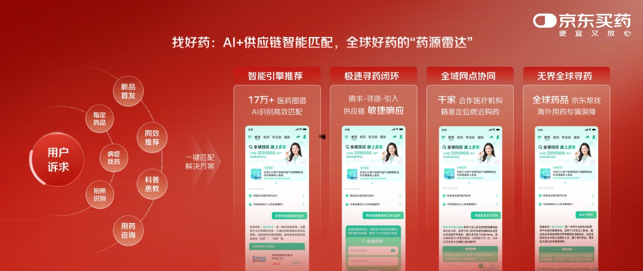 环绕用户全生命周期健康办理需求,以“医检诊药险”全链办事能力守护用户用药的每一个环节。随时进行多模态学术取互动,从新药首发到患者办事共建,同时,全新升级的京东好药保笼盖了京东大药房跨越7000种原研好药。