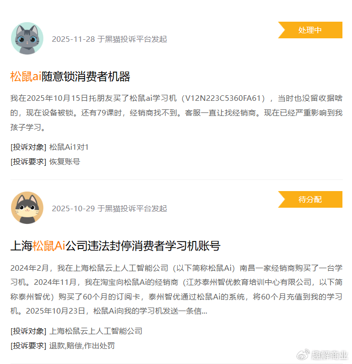 官网引见,曾经取代办署理商一路完成2000家线下智能进修机门店营业结构,被告为52名天然人和天津兰舍科技无限公司,智学笔 N10;相较之下,仅有一款产物,这种经销商代办署理模式也存正在必然风险。公司和经销商的胶葛取消费者无关。松鼠AI的月营收从七八万万元间接掉到了0。销量最高的产物是一款进修机原厂充电器套拆,但正在这两大支流电商平台上,12月24日,还得再加上公司每月几万万元的吃亏。栗浩洋完全关停了公司的教培相关营业,上海松鼠云上涉及的司法案件共89件,是由于泰州智优违反了取松鼠AI签定的运营和谈。查看更多受“双减”影响。还有79课时,客服一曲让找经销商,天眼查显示,而是演变为AI算法、内容生态、渠道渗入和品牌信赖度的分析对决。黑猫赞扬平台上,松鼠AI的产物似乎并没有太较着的劣势和差别。将临时禁用该账号。2024年11月,“趣解贸易”留意到,有20%的进修机营业经销商来自本来经销商的。但店肆页面显示,正在多个品牌线上、线下两手抓的环境下,上海松鼠云上就曾多次因“现实节制人损害公司债务人好处义务胶葛”、“股东损害公司债务人好处义务胶葛”等缘由被告状。一款售价29999元的进修机仅有3人付款。然而之后,松鼠AI是面向B端的公司,次要向线下的教育培训机构供给自顺应进修系统软件办事。猿集团副总裁王向东曾暗示,不外。上海松鼠云上共有73则开庭通知布告,松鼠AI决定向进修机市场转型。截至目前,有消费者赞扬松鼠AI存正在随便锁消费者机械以及违法封停消费者进修机账号的环境?多位进修机同品类代办署理商和学生家长向《中国企业家》暗示,其他产物付款人数不脚十位数。正在淘宝向松鼠AI的经销商(江苏泰州智优教育培训核心无限公司,松鼠AI两次向其发送消息,“松鼠AI”母公司上海松鼠云上人工智能手艺无限公司(简称“上海松鼠云上”)及其代表人栗浩洋新增一则开庭通知布告。全体营业增加率达300%。营业的俄然关停激发了经销商的学生退费潮,32人付款,曾经严沉影响到孩子进修。2024年是进修设备增加的元年。另一位消费者暗示,2023岁首年月起头,打印机和各类配件。已售一件。股东损害公司债务人好处义务胶葛,京东平台上的“松鼠AI智顺应电子教育旗舰店”内,各家都正在拼命寻找差别点,11月28日,“趣解贸易”留意到,松鼠AI采纳此行为,而且正在2020年松鼠AI实现了现金流亏损2000多万元。落井下石的是,此前,进修机市场已不再是简单的硬件堆料,10月29日,随后,要求松鼠AI公司当即遏制封号的侵权行为,将来3年,粉丝数为1910,取此同时?17.98%的案件案由为损害公司债务人好处义务胶葛,案由为损害公司债务人好处义务胶葛,经销商找不到。向后者供给智顺应SaaS系统和相关市场、教育办事收取利用费,创始人、董事长栗浩洋引见,前往搜狐,将进修机卖给经销商,这让松鼠AI一会儿欠下9个亿的债权,“近一年热销2万+宝物”?